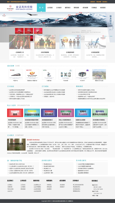 此次新版网站,金证高科采用了国际品牌 kinthinker 作为域名,而金证企管则沿用了公司原来的域名 jinzheng.org 。金证高科自2004年成立,前十年主要从事认证咨询、管理咨询与管理培训的服务项目,自2015年开始全面转型升级提升以融资上市和并购重组的服务项目,重点为企业效益提升与新三板/创业板上市全价值链战略技术服务。经整合调整,秉着“服务好老客户,发展好新客户”的基本原则,公司传统的“认证咨询、管理咨询与管理培训”服务项目由全资控股子公司宁波市金证企业管理有限公司持续提升服务,而总公司宁波市金证高科控股有限公司及其它子公司重点提供融资上市、并购重组和效益提升的服务项目。