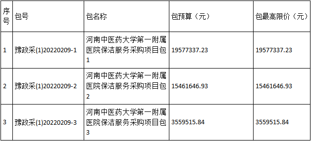 招标公告 | 河南中医药大学第一附属医院保洁服务采购项目