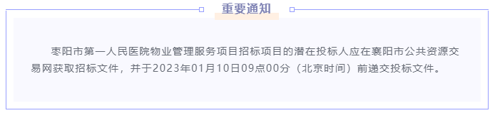 招标公告 | 枣阳市第一人民医院物业管理服务项目